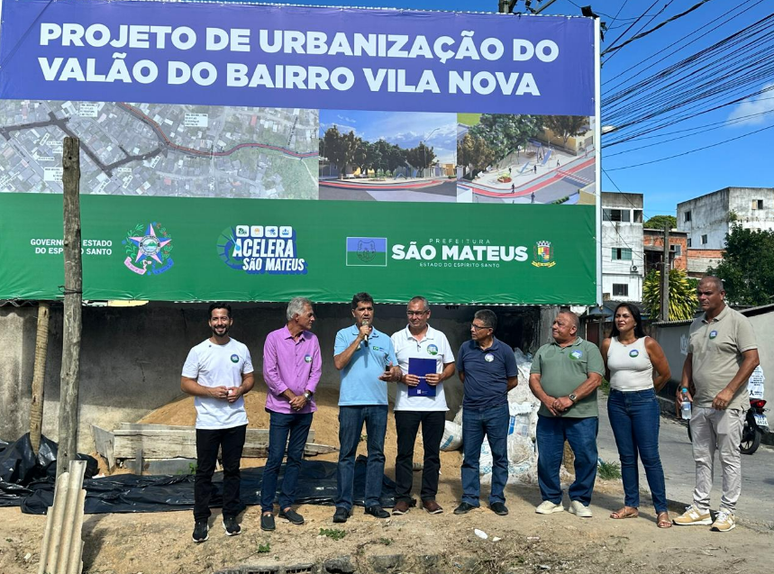 O vice-governador do Espírito Santo, Ricardo Ferraço, participou na última sexta-feira (10) de um ato público que representa avanço significativo na infraestrutura urbana do município de São Mateus. Foi assinada a autorização para a elaboração do projeto de drenagem, canalização e urbanização da área conhecida como Valão do Vila Nova, localizada entre os bairros Vila Nova e Vila Verde. A assinatura concretiza o compromisso de um compromisso de campanha do Prefeito Marcus Batista (Podemos), e é uma indicação apresentada pelo vereador Nivaldo Antônio dos Santos, o Wap Wap (Podemos). O projeto, faz parte do Acelera São Mateus, pacote de obras lançado em outubro de 2025 pelo prefeito Marcus Batista.