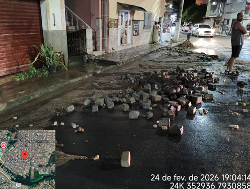 O volume de chuva variou entre 50 e 70 milímetros em menos de uma hora, segundo pluviômetros instalados no município. A intensidade provocou alagamentos em diferentes bairros, arrastou paralelepípedos, abriu buracos em ruas e comprometeu o tráfego em vários pontos.