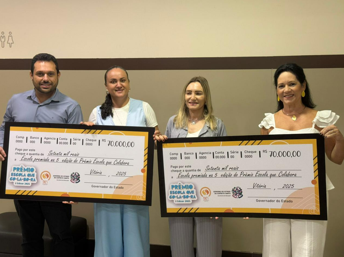 Pinheiros teve três escolas premiadas em nível estadual nesta segunda-feira (30), em Vitória, ao receber o prêmio “Escola que Colabora” e o Selo Ouro do Compromisso Nacional Criança Alfabetizada 2025.